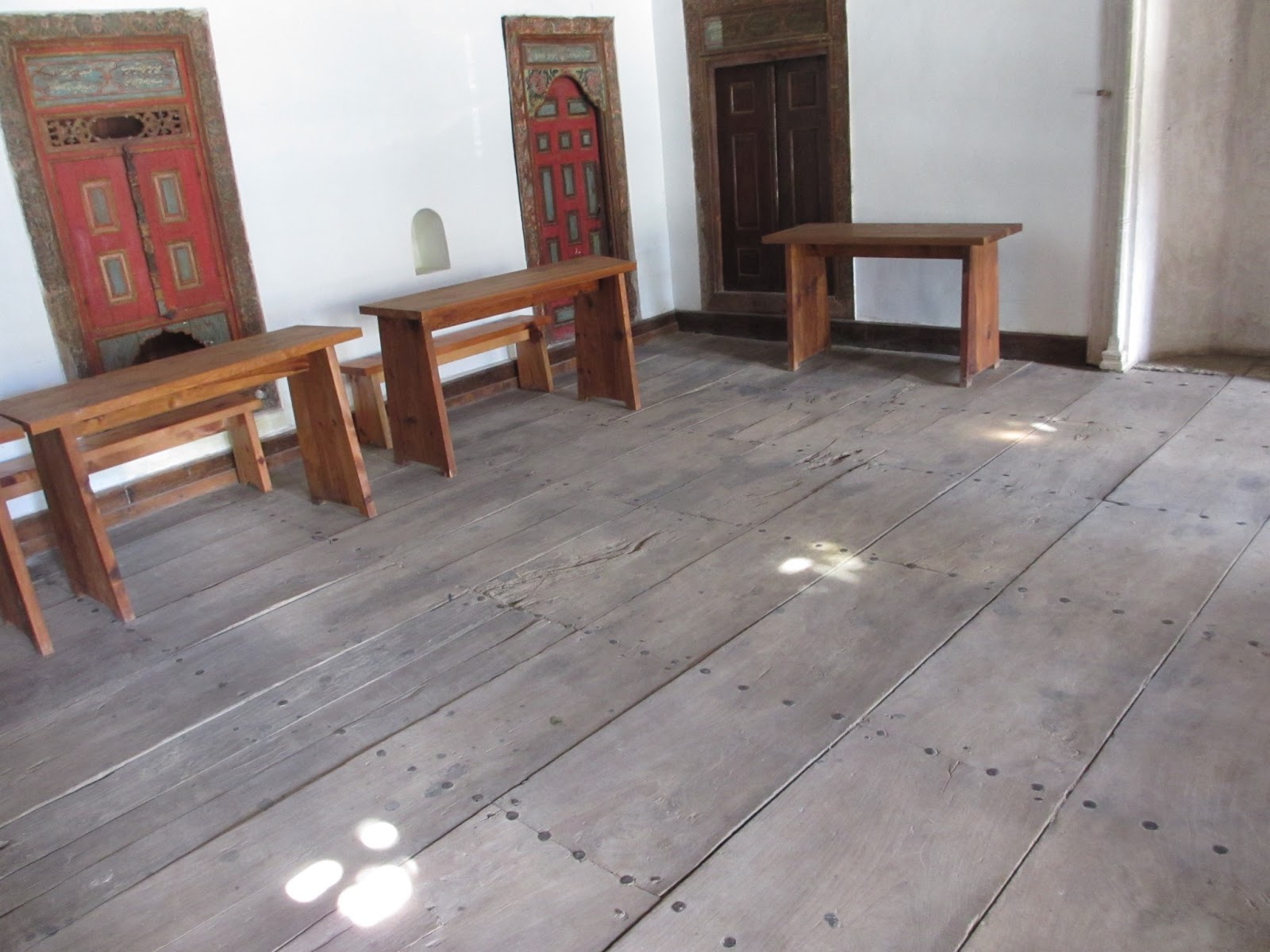 | Unlike a mosque, covered with beautiful carpet, this madrasa has bare floor boards. |