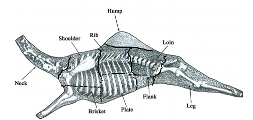 The loin of the camel is one of the most tender and fatty cuts. It is found on the backside of the camel toward the rear.