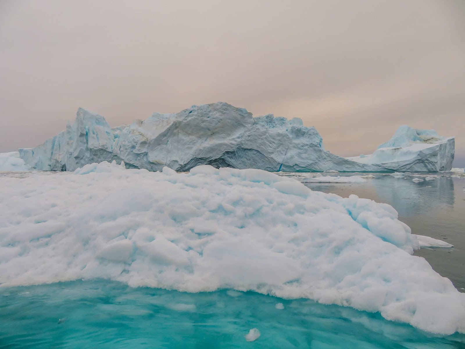 The Icefjord is covered in ice year-round. From June to September it is filled with brash ice and icebergs. Brash ice is accumulated floating ice made of fragments not more than 6.5 feet across. We learned this lesson when we took a walk up to the edge of the Icefjord and looked out at the expanse of white. It looked like something you could walk out onto and explore.