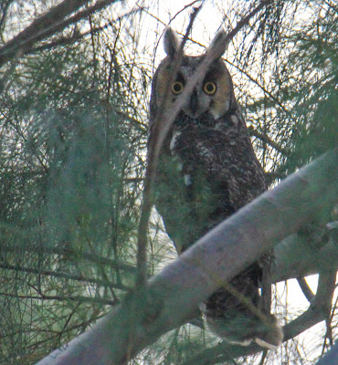 We visited Corn Springs with Judy's brother Dave and his wife Bonnie on Saturday, February 13. We'd previously visited Corn Springs with Andrew and Michaela on December 19 and I visited alone on January 16. Both previous times I saw long-eared owls, the first time thinking they were great-horned owls and getting no photos and the second time seeing substantially more owls and getting lots of photos. This time was much later in the afternoon on a cloudy day, so lighting conditions were not as good and we didn't have as much time.
