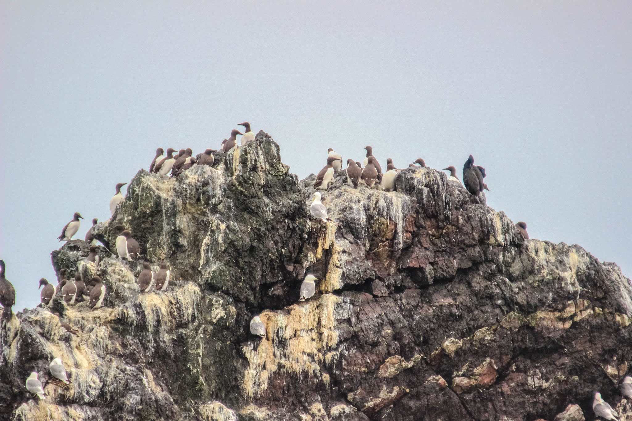 | Harbor seals on rocks near the western edge of Resurrection Bay. They camouflage so well with the rocks that we kept noticing more the more we looked. |