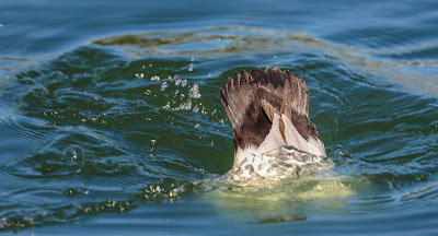 I was able to get very close to them. There was also one solitary canvasback along the backside of an island in the reservoir which was continually diving.